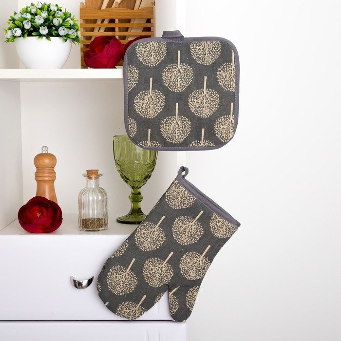 Набор Доляна «Лиственный лес» (фартук, прихватка, варежка), рогожка