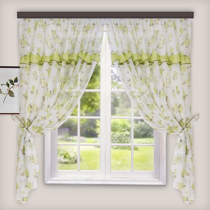 Комплект штор для кухни Цветы 280×160 см, зеленый, пэ 100%