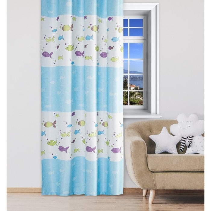 Портьера Крошка Я «Океан» без держателя цвет голубой, 110×260 см, блэкаут, 100% п/э