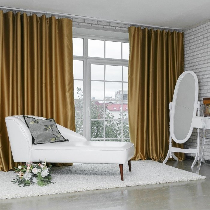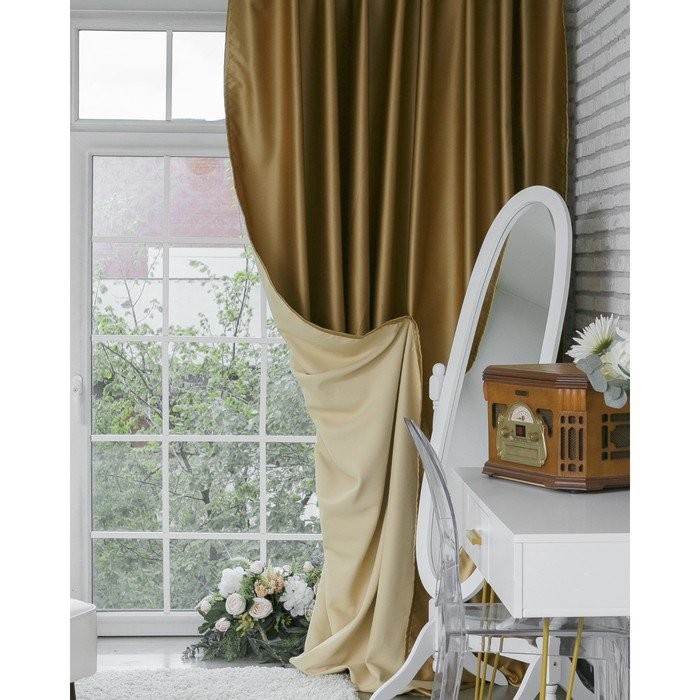 Штора портьерная «Этель» 130×300 см, двусторонний блэкаут, цвет Золотой, пл. 240 г/м², 100% п/э