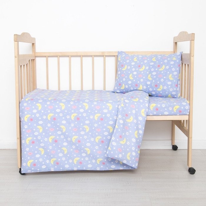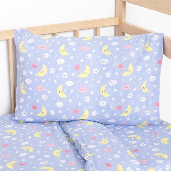 Постельное бельё детское «Спокойной ночи», цвет голубой, 112×147, 100×150, 40×60 1 шт, ситец/бязь, хл 100%