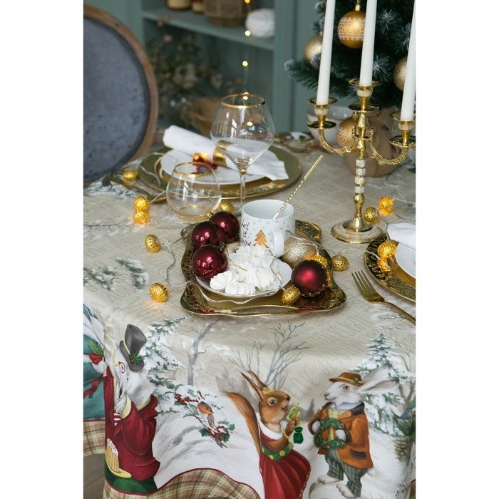 Скатерть «Этель» Winter holidays d=220см +/-3см с ГМВО, 100% хл, саржа 190гр/м2