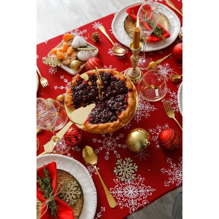 Скатерть Доляна «Новый год: Белые снежинки» 220×149 см, 100% хлопок, 164 г/м2