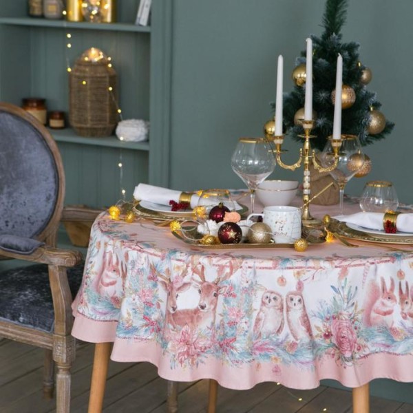 Скатерть «Этель» Pink magic d=220см +/-3см с ГМВО, 100%хл, саржа 190 гр/м2