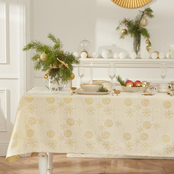 Скатерть Этель «Snow time» цв.золотой, 150*180 см, 115 ±10 гр,100% п/э