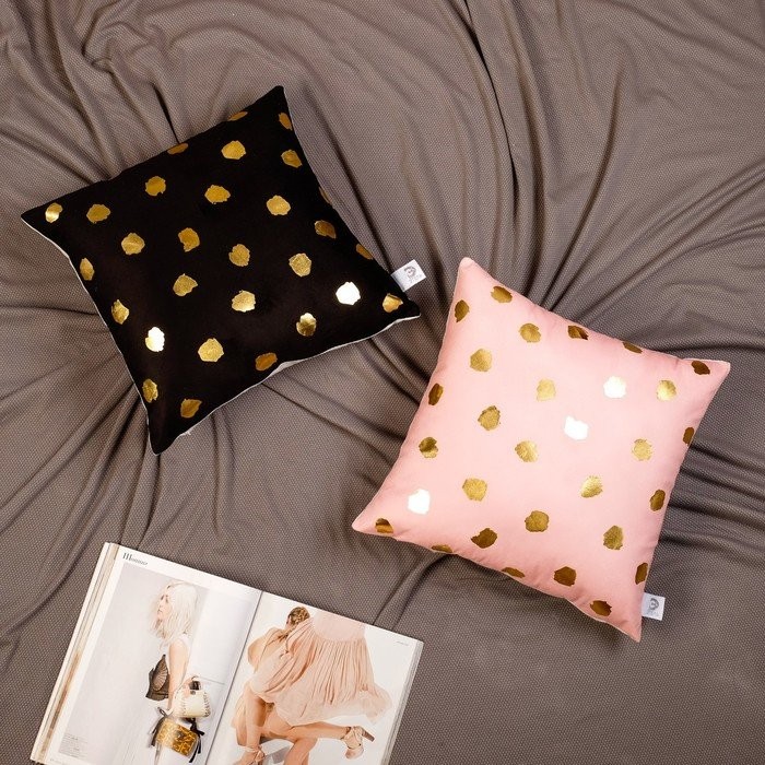 Подушка декоративная Этель «Горошек чёрный», 40×40 см, велюр, 100% п/э