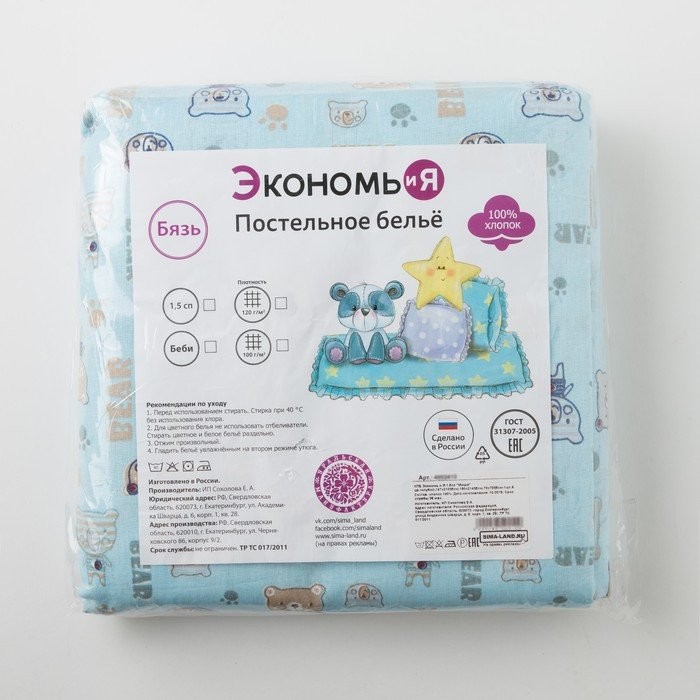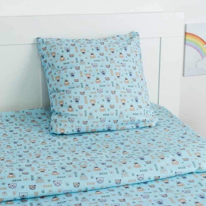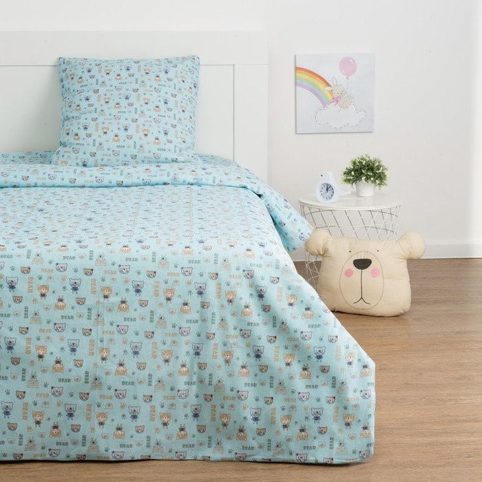 Детское постельное бельё Экономь и Я «Миша» 1.5сп, цвет голубой, 147×210±5см, 150×214±5см, 70×70±5см — 1шт