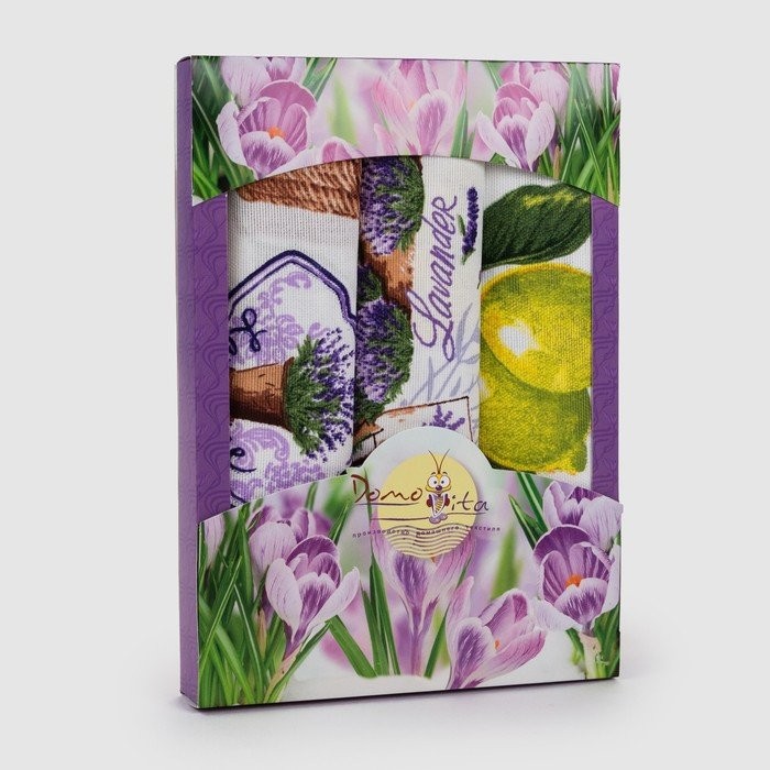 Набор полотенец в коробке Лаванда 45×60 см, 3 шт, вафля, 170 гр/м2, хлопок 100%