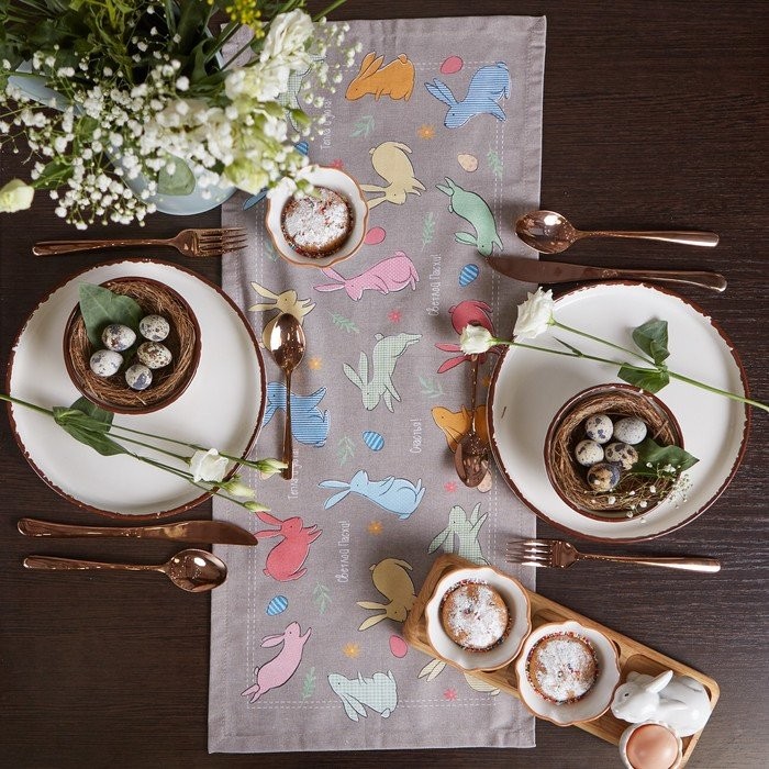 Дорожка пасхальная на стол Этель «Зайцы» 30×70 см, 100% хл, саржа 190 гр/м2