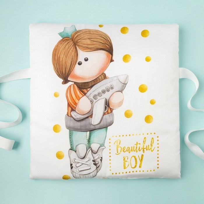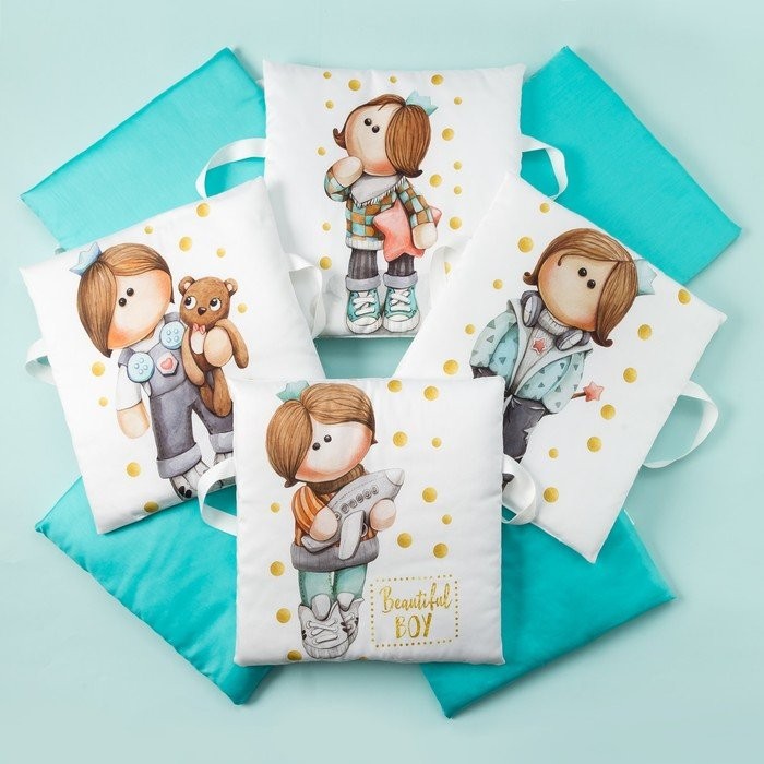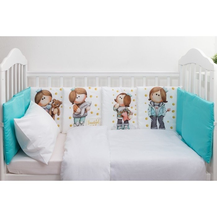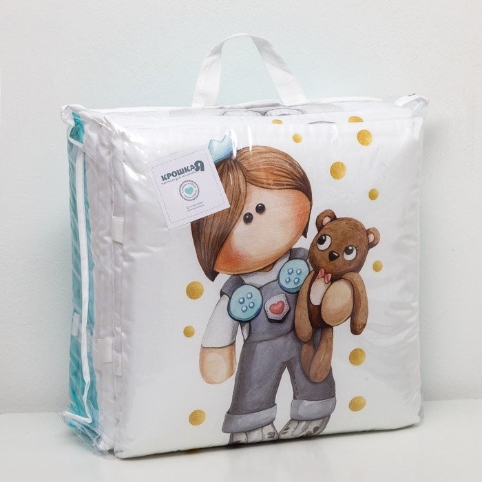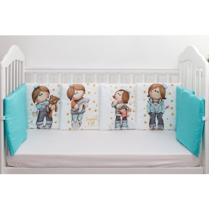 Бортики в роватку Крошка Я «Принц Тим», цвет белый/мятный, 35×35 см-8 шт, сатин