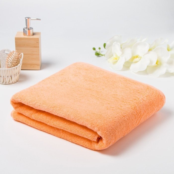 Полотенце махровое гладкокрашеное, 100×180 см, цвет персиковый