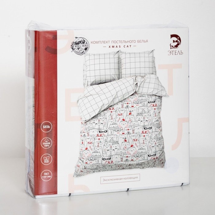 Постельное белье Этель Дуэт Xmas cat 143*215 см — 2 шт, 240*220 см, 70*70 см — 2 шт