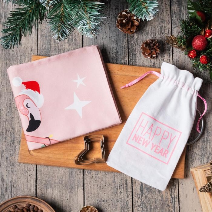Набор в мешочке «Happy New Year» полотенце 40х73см, формочки для запекания 3 шт