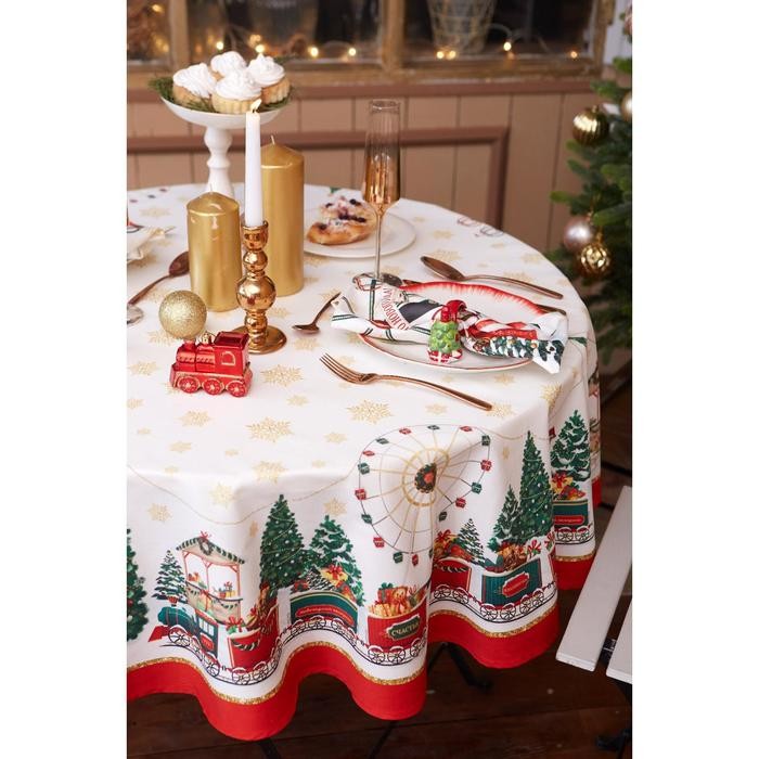 Скатерть «Этель» Новогодняя ярмарка d=220 +/- 3см с ГМВО, 100%хл, саржа 190 гр/м2