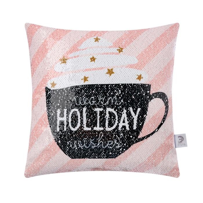 Наволочка с пайетками Этель «Holiday» 40×40 см, 100% п/э