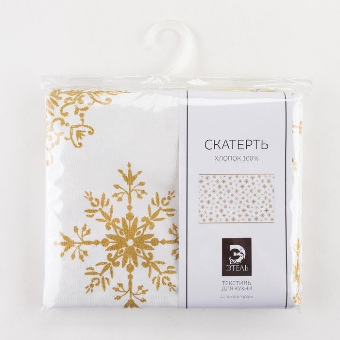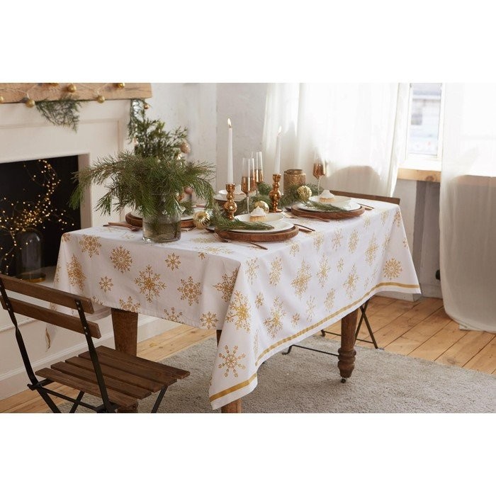 Скатерть «Этель» Золотые снежинки 149х250см, 100%хл, 190 г/м2