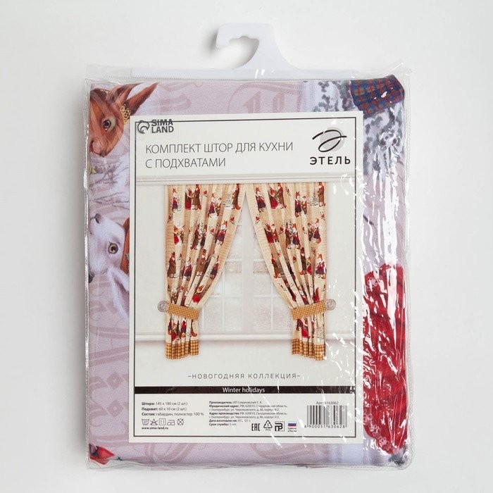 Комплект штор д/кухни с подхватами «Winter holidays» 145х180см-2 шт., габардин