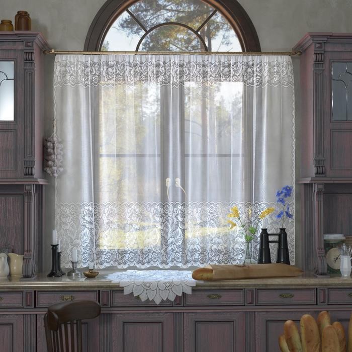 Штора кухонная р.М512Б на шторной ленте в165*ш245 см, белый, пэ 100%