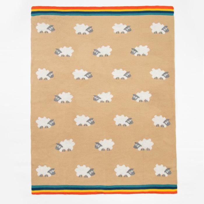 Плед вязаный Крошка Я «Овечки» цв. бежевый, 80*100 см, 100% хлопок