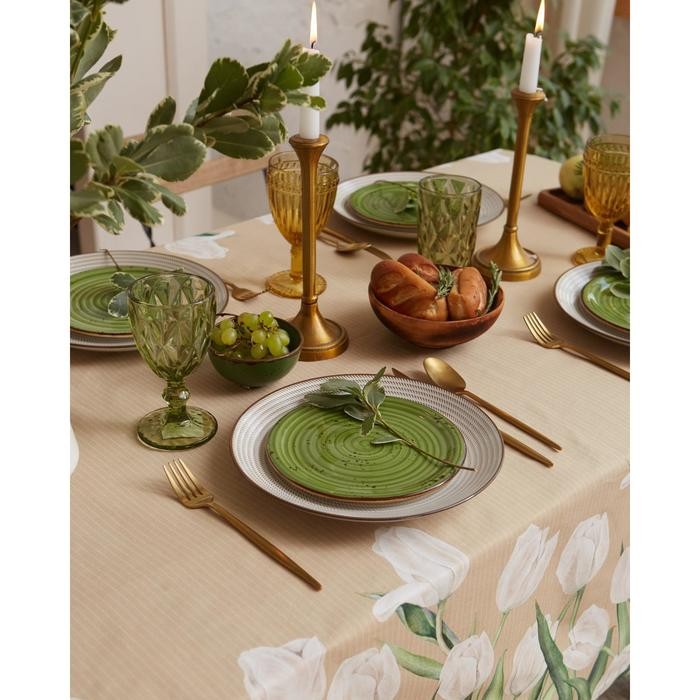Скатерть «Этель» Белые тюльпаны 149х220см, 100% хл, саржа 190 г/м2