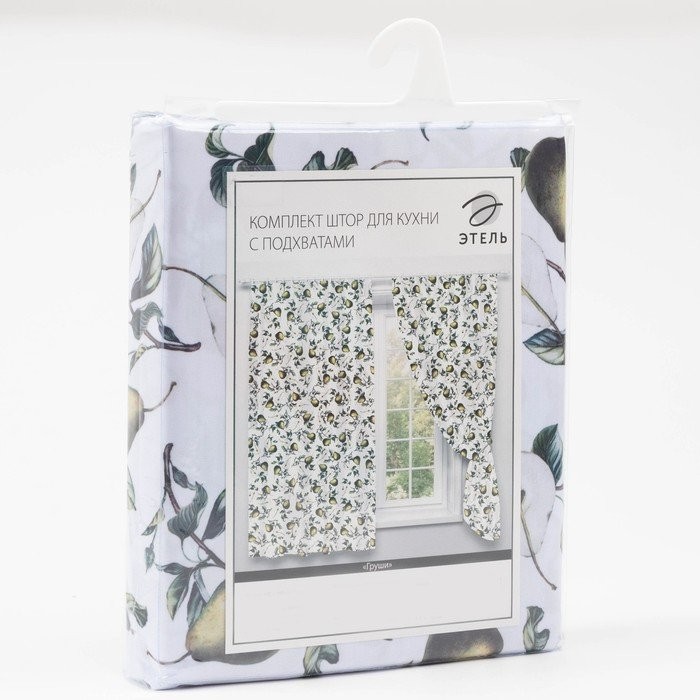 Комплект штор для кухни с подхватами Этель «Груши» 145х180см-2 шт., 100% п/э