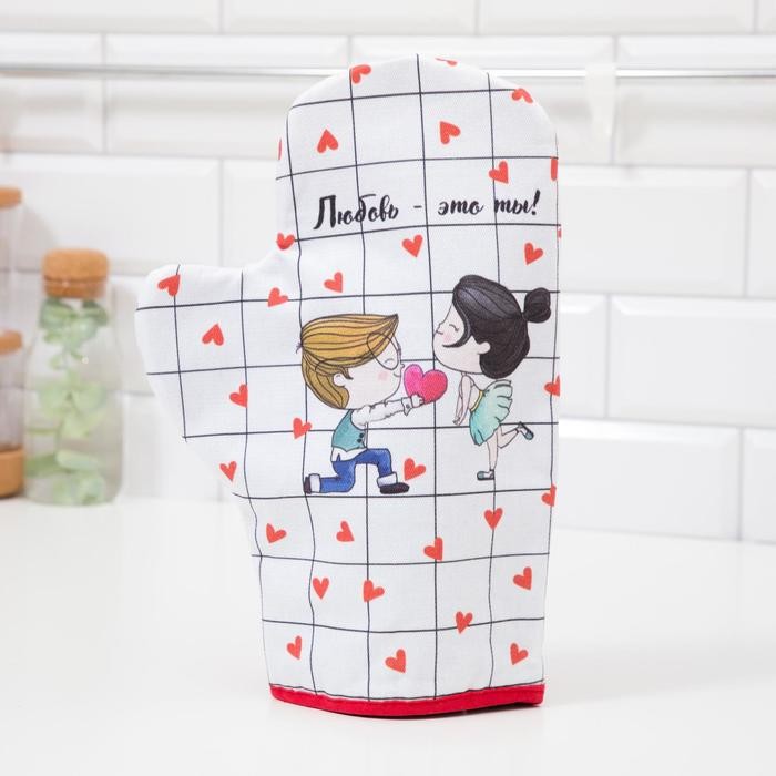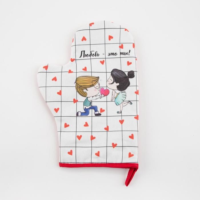 Варежка-прихватка «Любовь — это ты» 20х28см, саржа, 100% х/л, ватин 250г/м2