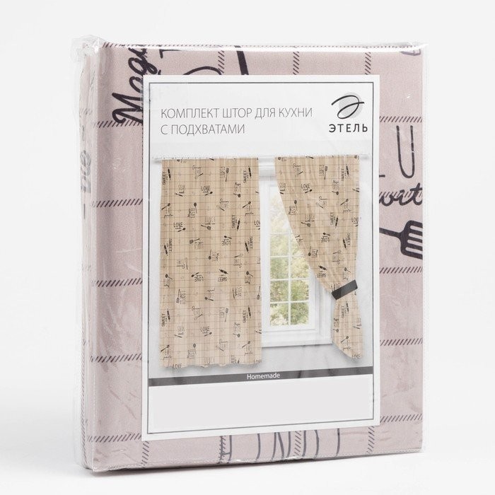 Комплект штор для кухни с подхватами Этель Homemade 145х180см-2 шт., 100% п/э