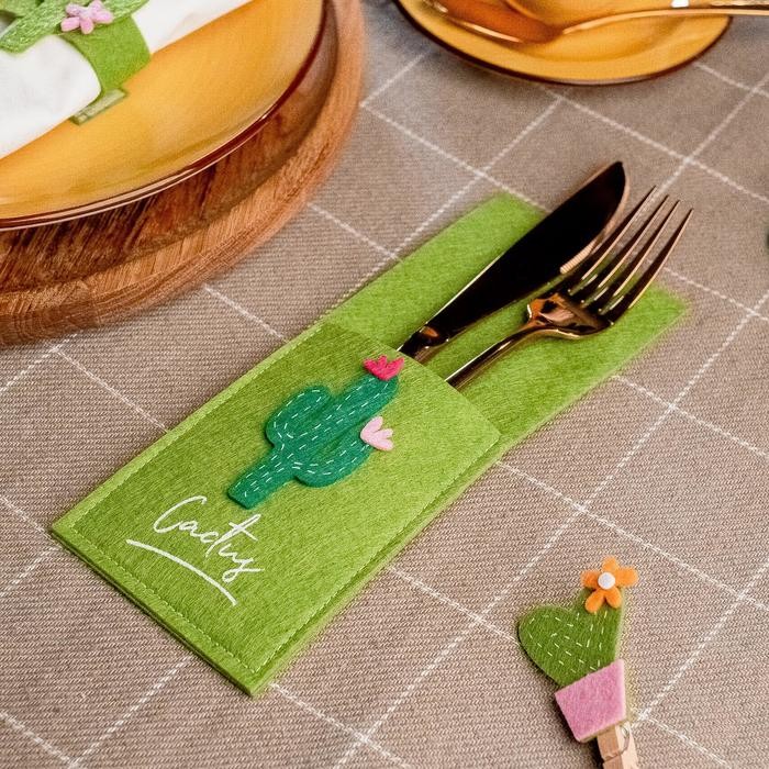 Конверт для столовых приборов «Кактусы» 8,5×22 см, 100% п/э, фетр