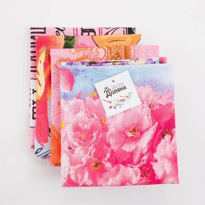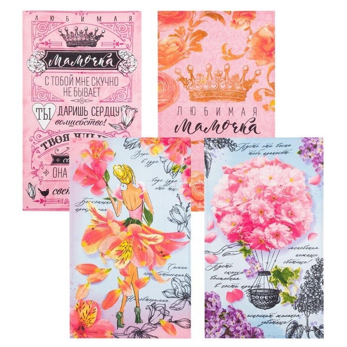 Набор кухонных полотенец Доляна «Любимая мамочка», 35х60см-4шт, 100% хл