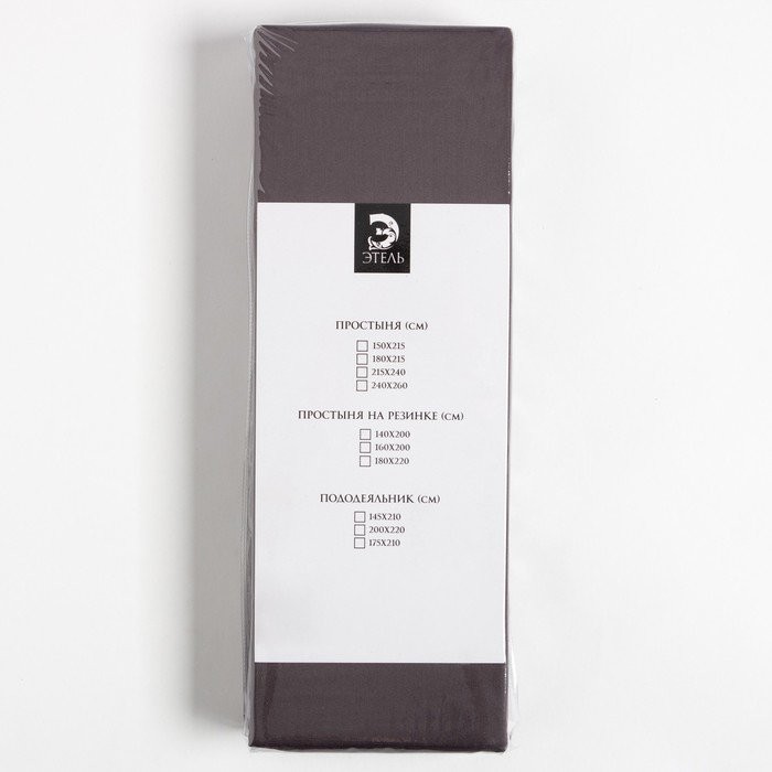 Простыня на резинке Этель 140*200*25 см, цв.темно-серый, 100% хлопок, мако-сатин, 125 г/м²