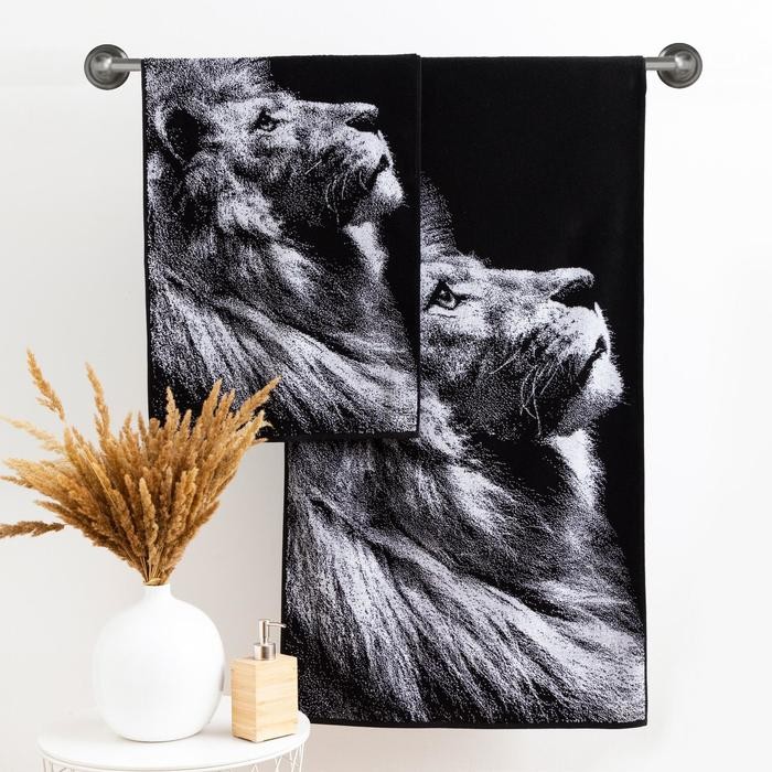 Полотенце махровое Этель ЧБ «Лев» 70×130 см