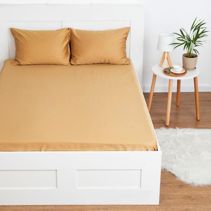Простыня на резинке Этель 140*200*25 см, цв.песчаный, 100% хлопок, мако-сатин, 125 г/м²