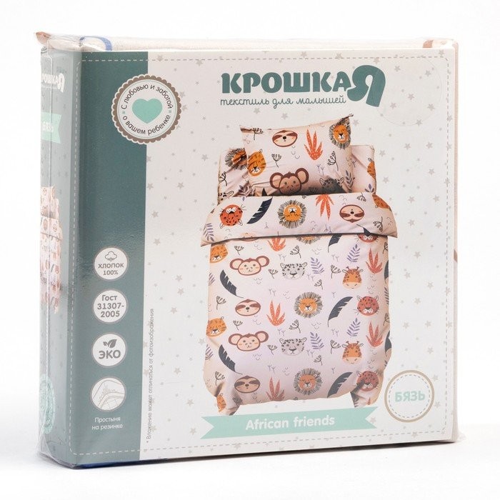 Постельное бельё детское Крошка Я «African friends», 112×147 см, 60×120+20 см, 40×60 см, 100% хлопок